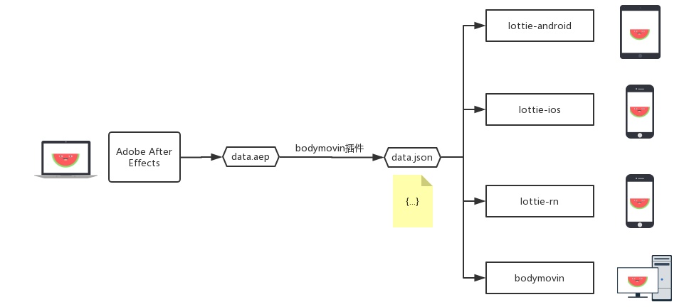 前面已經(jīng)提過 Lottie 是 Airbnb 開源的一個(gè)動(dòng)畫渲染庫。我們可以理解為它是一個(gè)多功能的視頻播放器,開發(fā)人員需要將這個(gè)播放器部署到相應(yīng)的環(huán)境中。然后設(shè)計(jì)人員提供視頻(動(dòng)效文件)給開發(fā)人員,讓開發(fā)人員按照要求播放視頻文件,即可完成動(dòng)效的應(yīng)用。