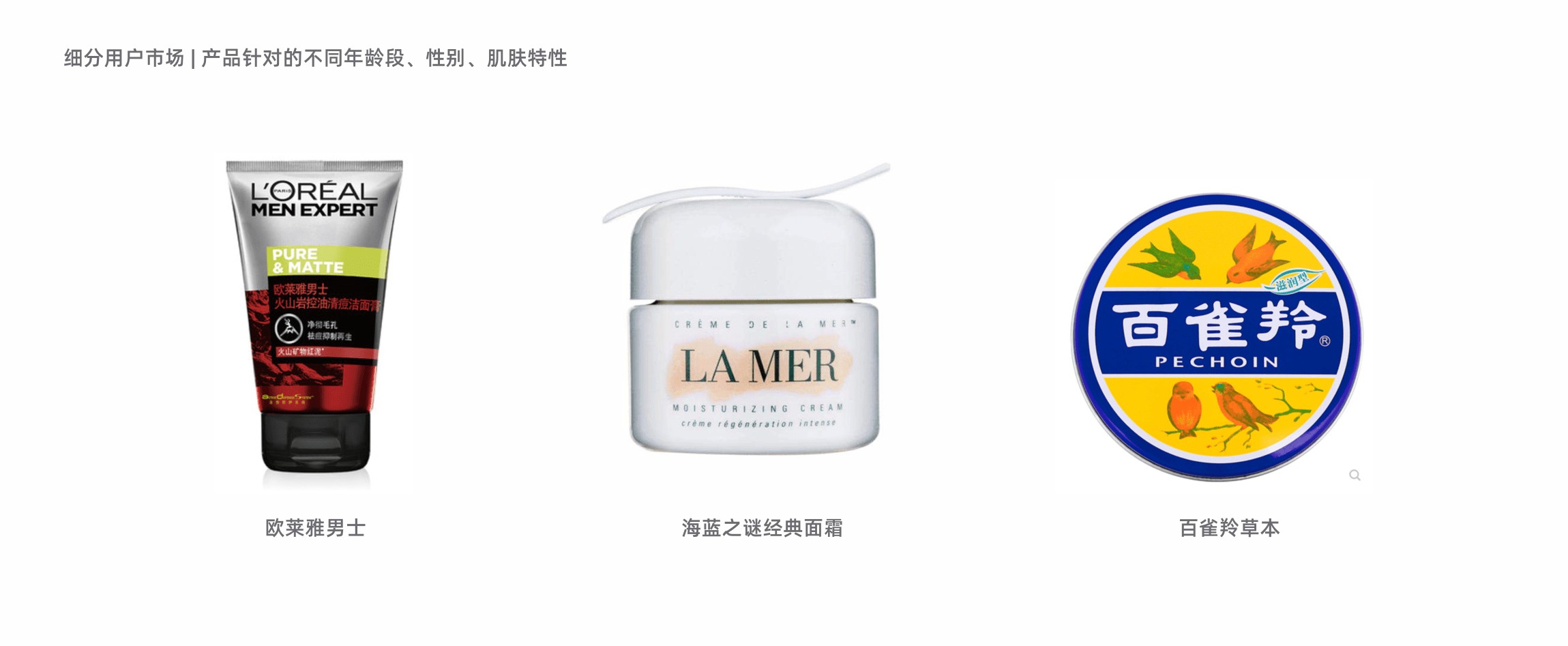 這樣的畫像通常是對整個需求市場、人群進行大類別的劃分,包含的是用戶的基本人口屬性、行為特征等,需要劃分出幾個不同的市場,比如我們說的護膚品產(chǎn)品,在市場上的劃分,根據(jù)用戶的性別、年齡、皮膚特性等