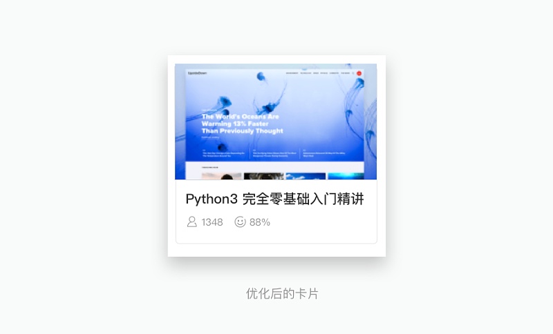 我們的卡片標題與輔助信息對比不明顯,解決方案就是加大標題,弱化輔助信息,最后得到結(jié)果如下圖:
