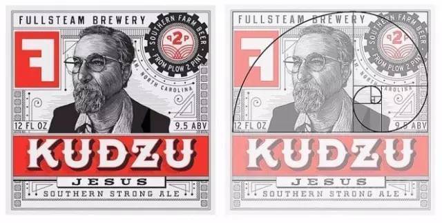 Helms 工作室 為Fullsteam 啤酒進行品牌設計的時候,也同樣借助黃金螺旋來布局內容。