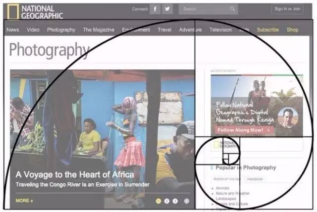 對于網頁內容而言,黃金螺旋的軌跡同樣可以起到重要的作用。我們的視覺可以很自然地沿著黃金螺旋的軌跡運動,這也就是說這樣設計網頁布局會讓訪客更加自然地瀏覽內容。