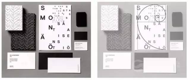Saastamoisen säätiö 的這個視覺設計稿就更典型了。圖中的字母分布看起來亂中有序,它們就是沿著黃金螺旋來分布的,并且隨著螺旋半徑的縮小而逐漸縮減字體尺寸,并且提升字母的密度。這樣的設計保證了視覺的平衡,富有設計感而不混亂。