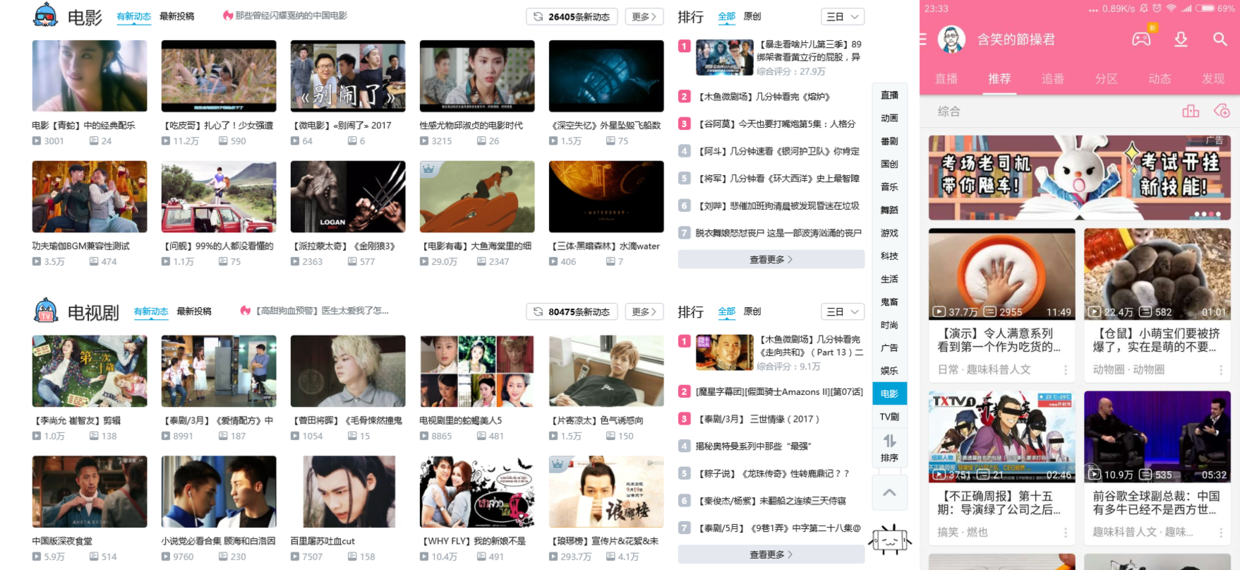 而內(nèi)容上,B站會進一步的向兩端拓展,一方面增加PGC內(nèi)容的產(chǎn)量嘗試向一線的PGC視頻網(wǎng)站挑戰(zhàn)(畢竟流量不比人家差多少了),另一方面會降低PUGC的門檻,讓更多的UGC級別的內(nèi)容涌入,而移動端的B站客戶端的內(nèi)容推薦已經(jīng)一改PC版的社區(qū)推介刷新模式,而采用智能算法推薦用戶可能喜歡的內(nèi)容。這樣為相對更低質(zhì)量的UGC內(nèi)容的混入的容忍度會更高。