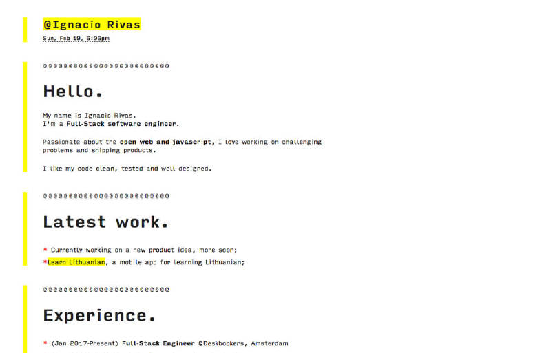顧名思義,粗野主義的設(shè)計肯定和精心的構(gòu)建、微妙的設(shè)計無法掛鉤。但是,粗野主義設(shè)計和極簡風(fēng)一樣,有這屬于它自己的典型特征,這種風(fēng)格的網(wǎng)頁設(shè)計常常會帶有代碼式的視覺特點,深色背景,等寬字體以及白色或者綠色的文本內(nèi)容。