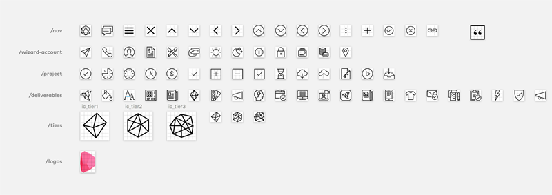 還有很多免費的圖標(biāo)集以8pt為基準(zhǔn)被設(shè)計出來。在這方面Material Design也有一些很棒的資源。不過你可以設(shè)計你自己喜歡的圖標(biāo)。下面是一個截圖,關(guān)于如何在我們核心的GUI模板中索引所有圖標(biāo)。